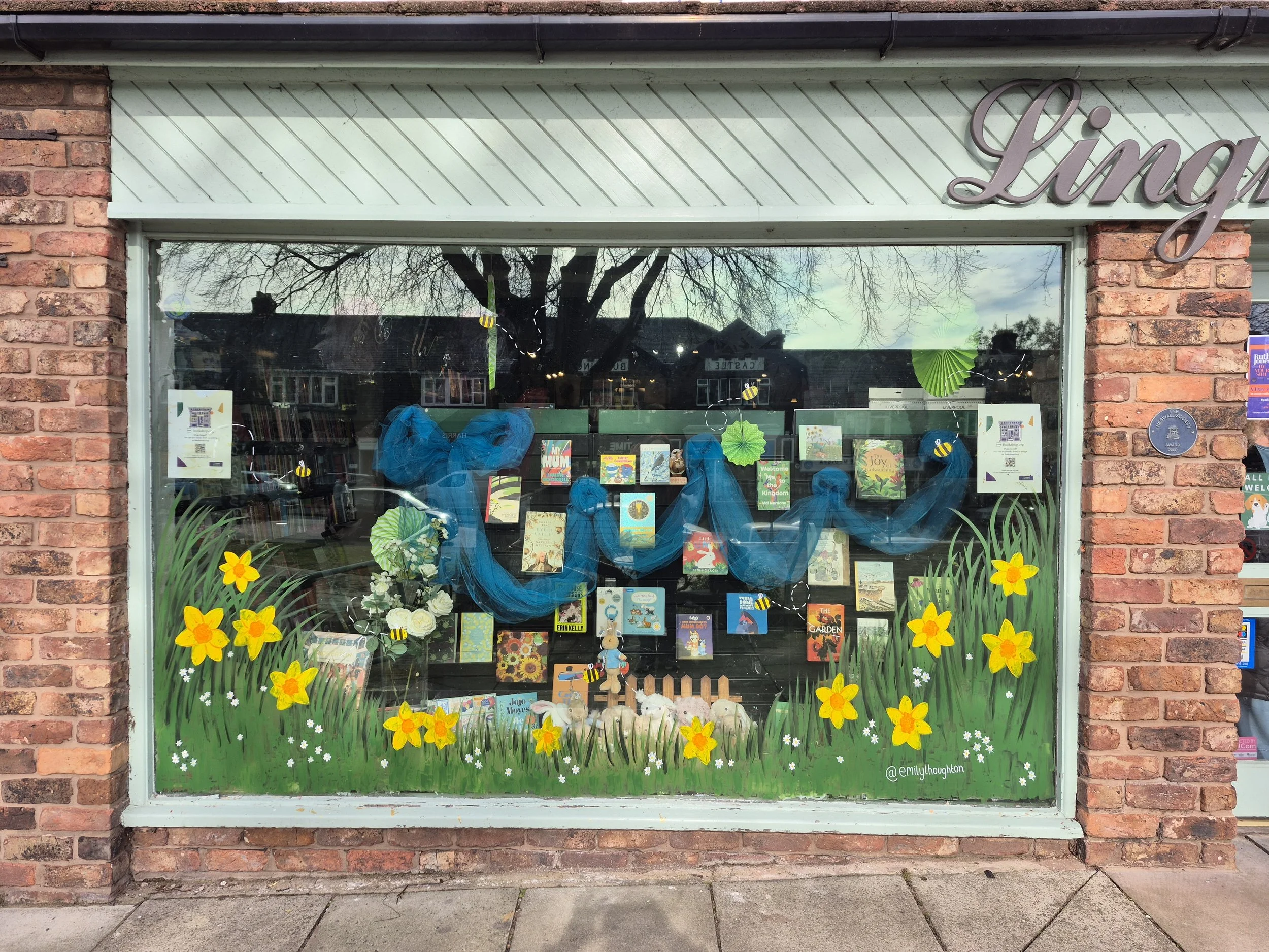 To promote upcoming author events organised by Linghams Booksellers, I hand-painted typographic adverts on their shop window.